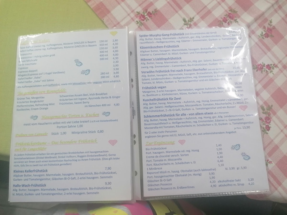 The menu at Kleines Keller Café is a delightful showcase of local flavors, ideal for both breakfast and lunch. You can indulge in their exceptional selection of hearty breakfasts which include delightful regional specialties such as homemade Allgäu cold meats and cheeses, ensuring every bite is a discovery of local taste. Be sure not to miss their self-made cakes and tortes that look as delicious as they taste, providing a sweet finish to your meal. As one customer put it, “Too full to try the cakes & pralines but they look just as delish!” Each dish is crafted with care and served with a smile by the attentive staff, showcasing their dedication to customer service.